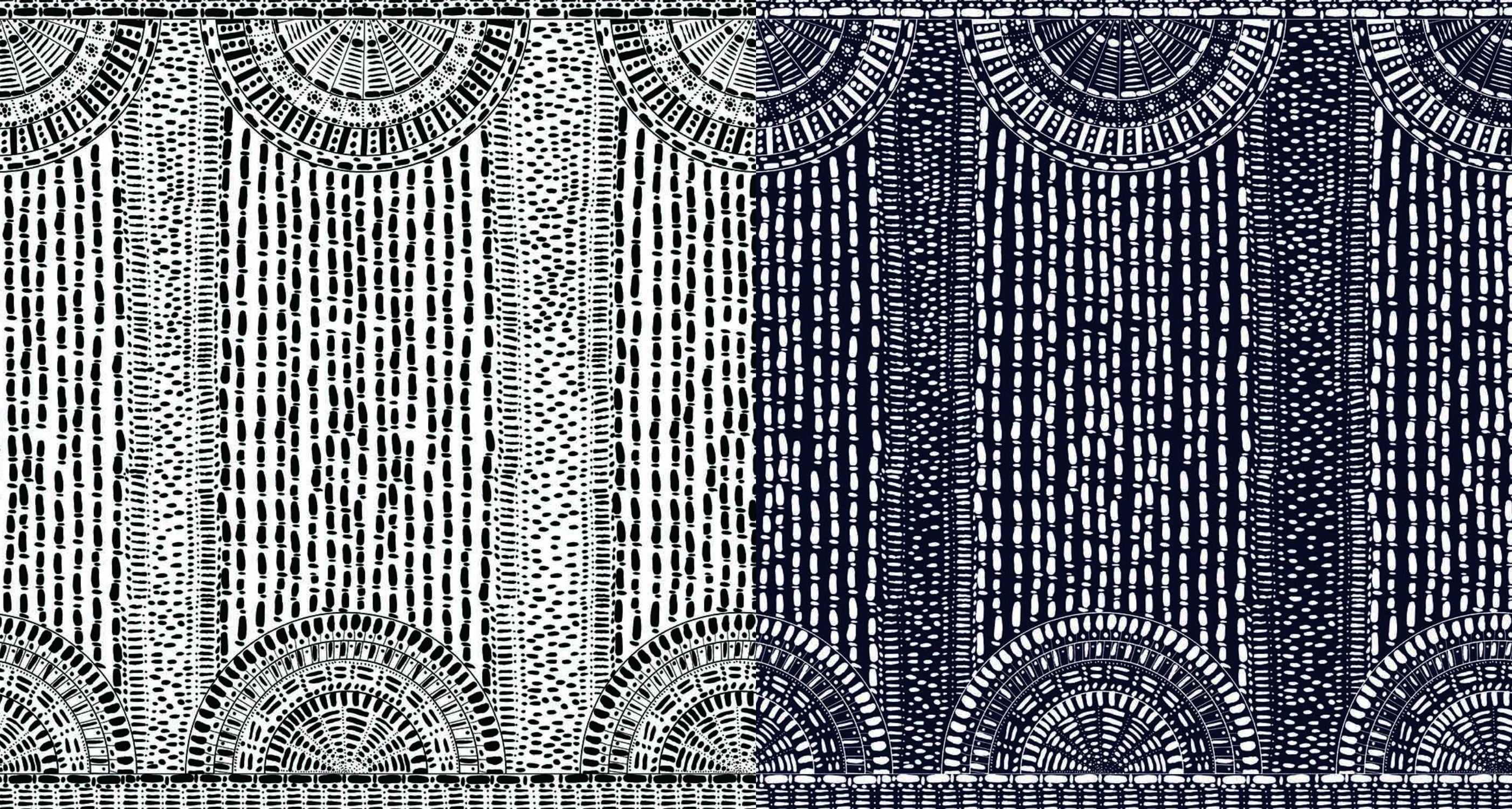 A graphic elaboration with strong tones, inspired by the magical world of labyrinths and botanical gardens-destructured and reinterpreted through pure geometries. The strong contrasts: Indian ink is drawn and afterward digitalized, a reminder of the refined architectural details of the greenhouses, transformed into almost hypnotic graphic patterns.