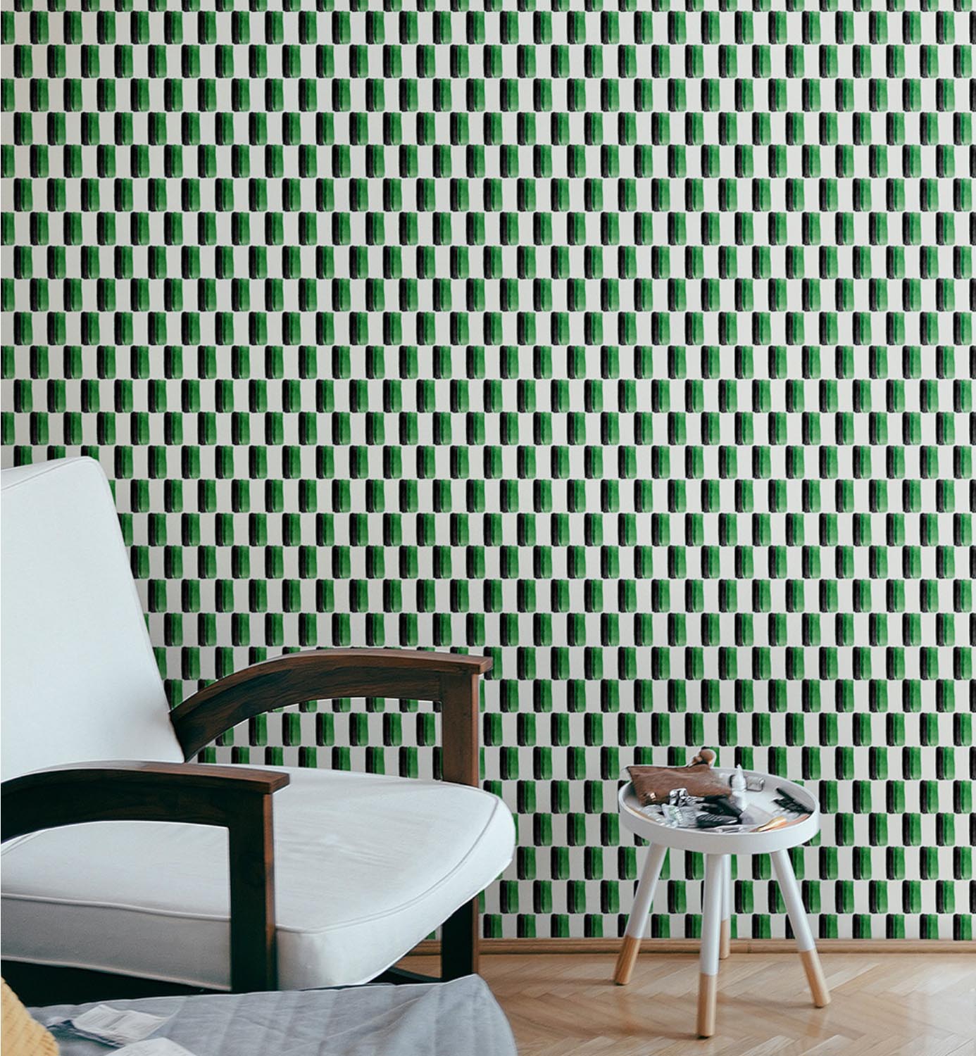 An exercise in precision, the controlled brushstrokes of this pattern have been slightly displaced, revealing a complementary or contrasting colour.