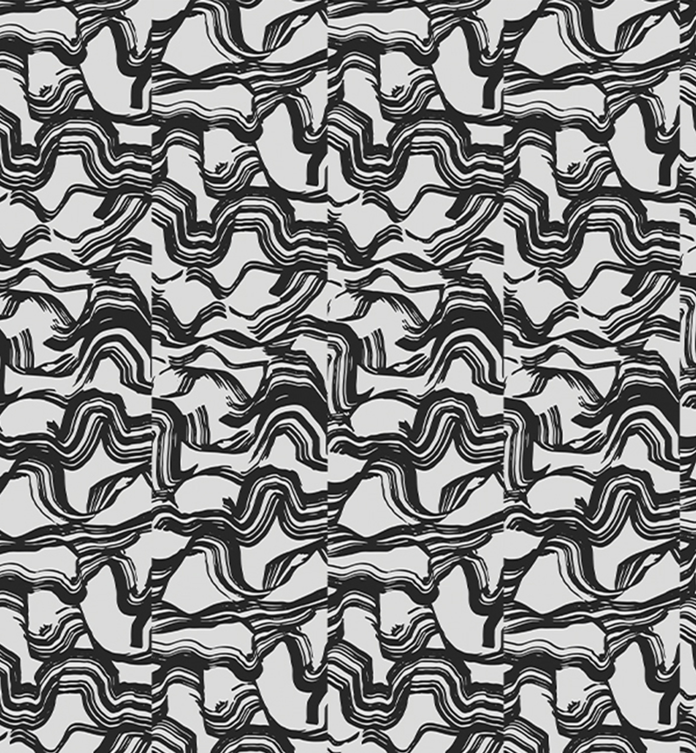 Repeated patterns broken from the edge and enhanced graphic marks with a contrasting colour that narrates and celebrates the creative gestures, freedom and dynamism derived from it.