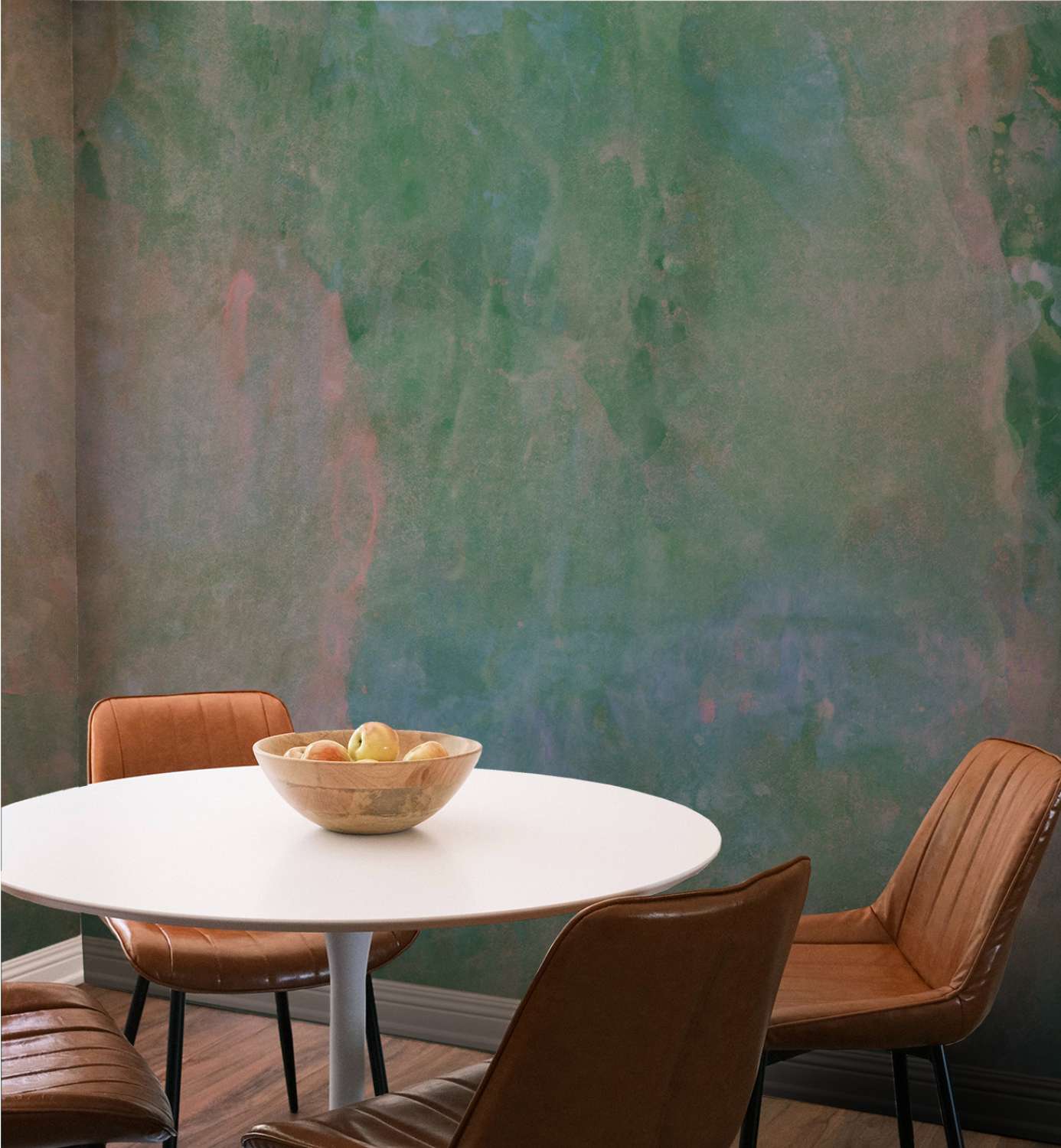 We use watercolour layers to simulate the natural crusty marks and halos left on the walls by time.