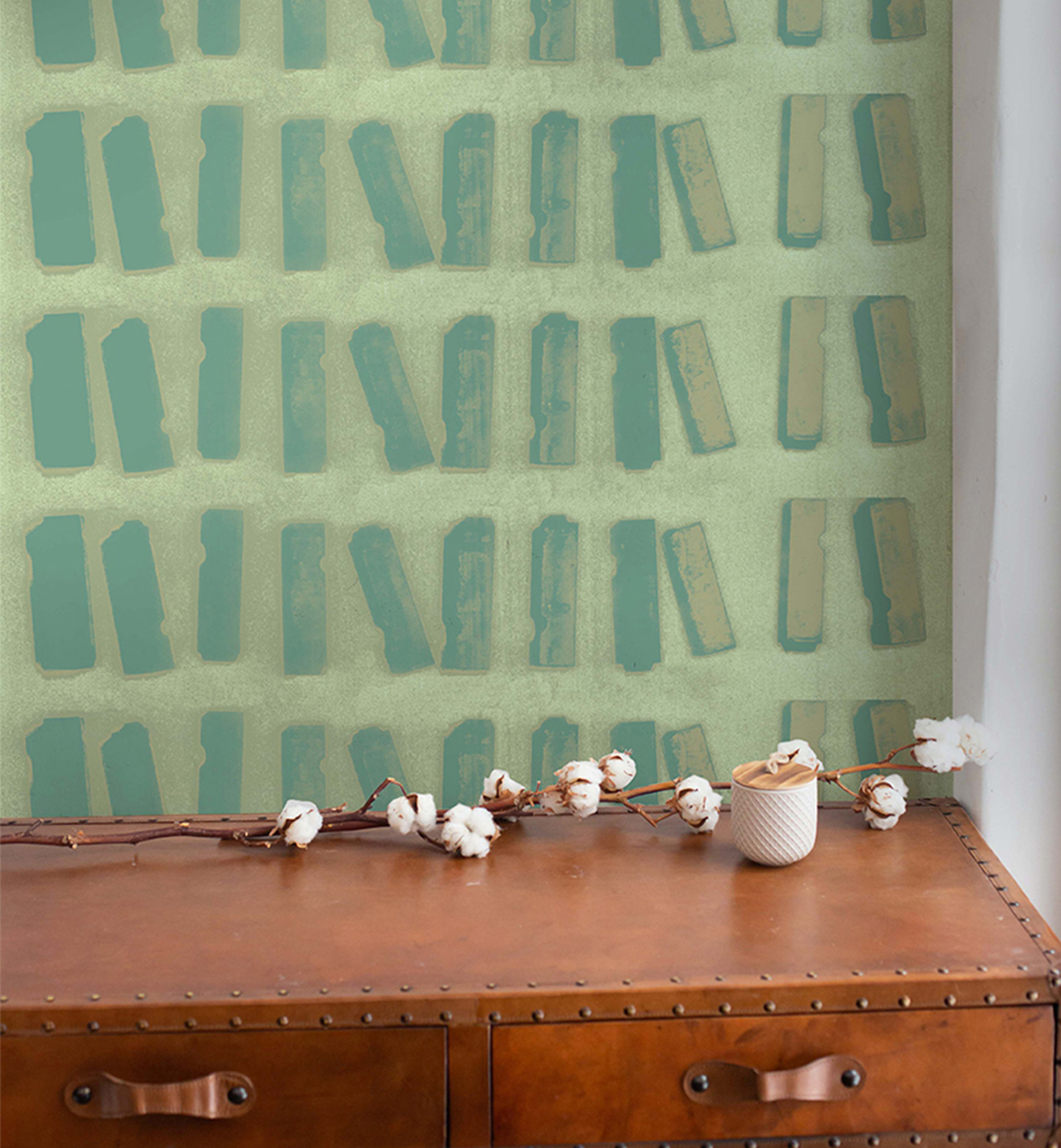 The drawings of this wallpaper originate from cyanotype printed pictures taken during an artistic period in Berlin. By portraying the small letters that were once used in typography, the designer has invented a visual language in code to connect and communicate with the world around her. Transformed into wallpaper, enriched with a background and colours, it becomes a language of aesthetics with multiple meanings.