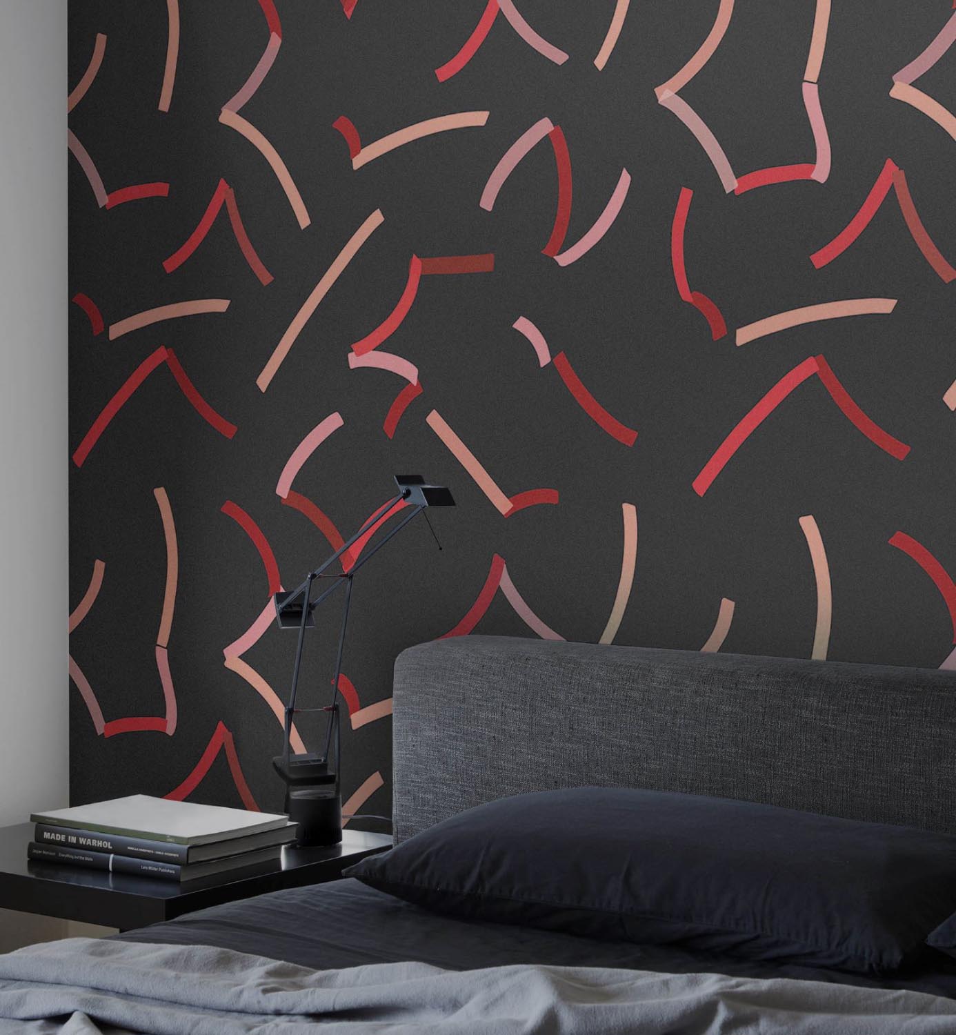 A game of colours transformed into lines that seem to dance on the wall. An all-encompassing atmosphere that redesigns the space.