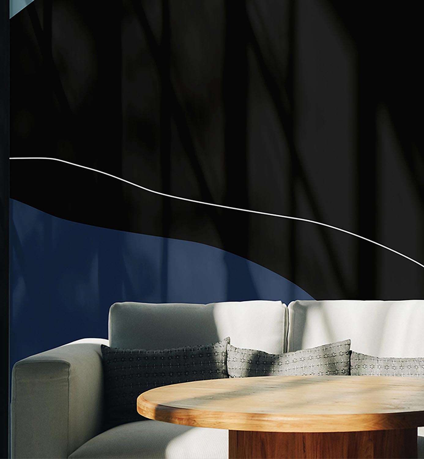 Smooth waves slowly stretch over the surface, reinterpreting the sea’s eternal movement. A clear painted background, broken by thin lines, resembles the invisible lines drawn by the surf breaking the shore before receding.