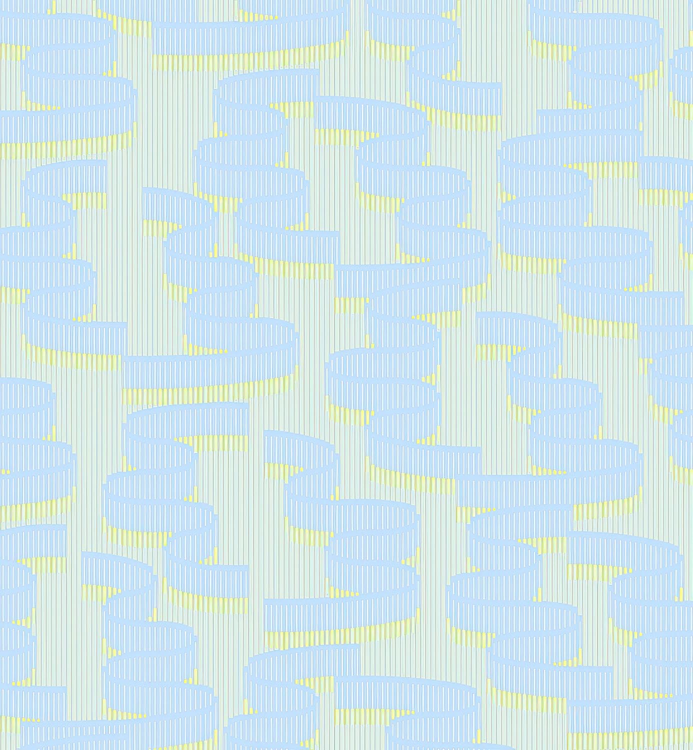 The natural motion of opposing waves, bursting into a thousand lines that deceive the space. The pattern emerges from the fragmented surface, and it’s both figure and background.