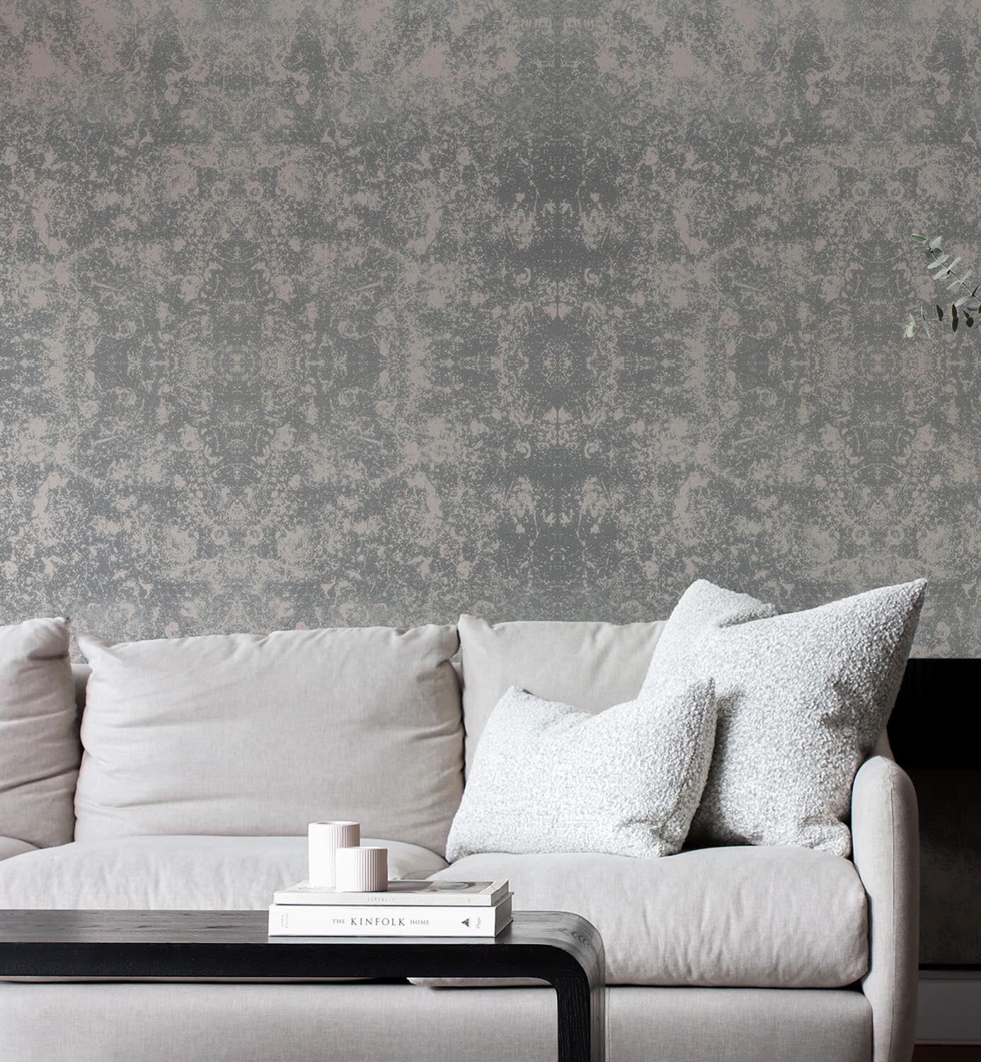 The result of an artistic performance inspired by the atmosphere of the Sicilian islands, the scratches are the consequence of an action that left a mark. Etching is the technique used for this mood: once printed on paper, it is digitally processed, mirrored and rotated to create a wallpaper that enhances the beauty of the signs left by time.