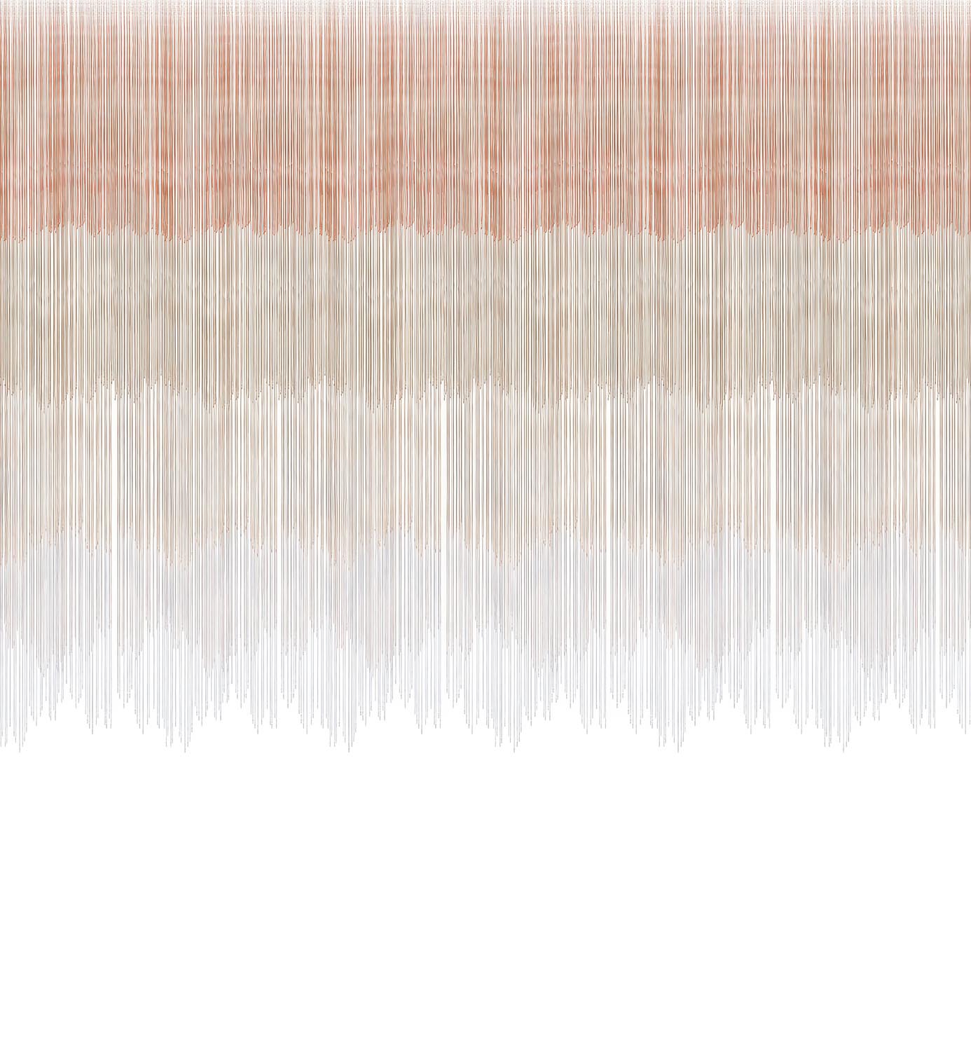 Dotted vision of a gradient colour spectrum, thin threads coming down to create an evanescent curtain.